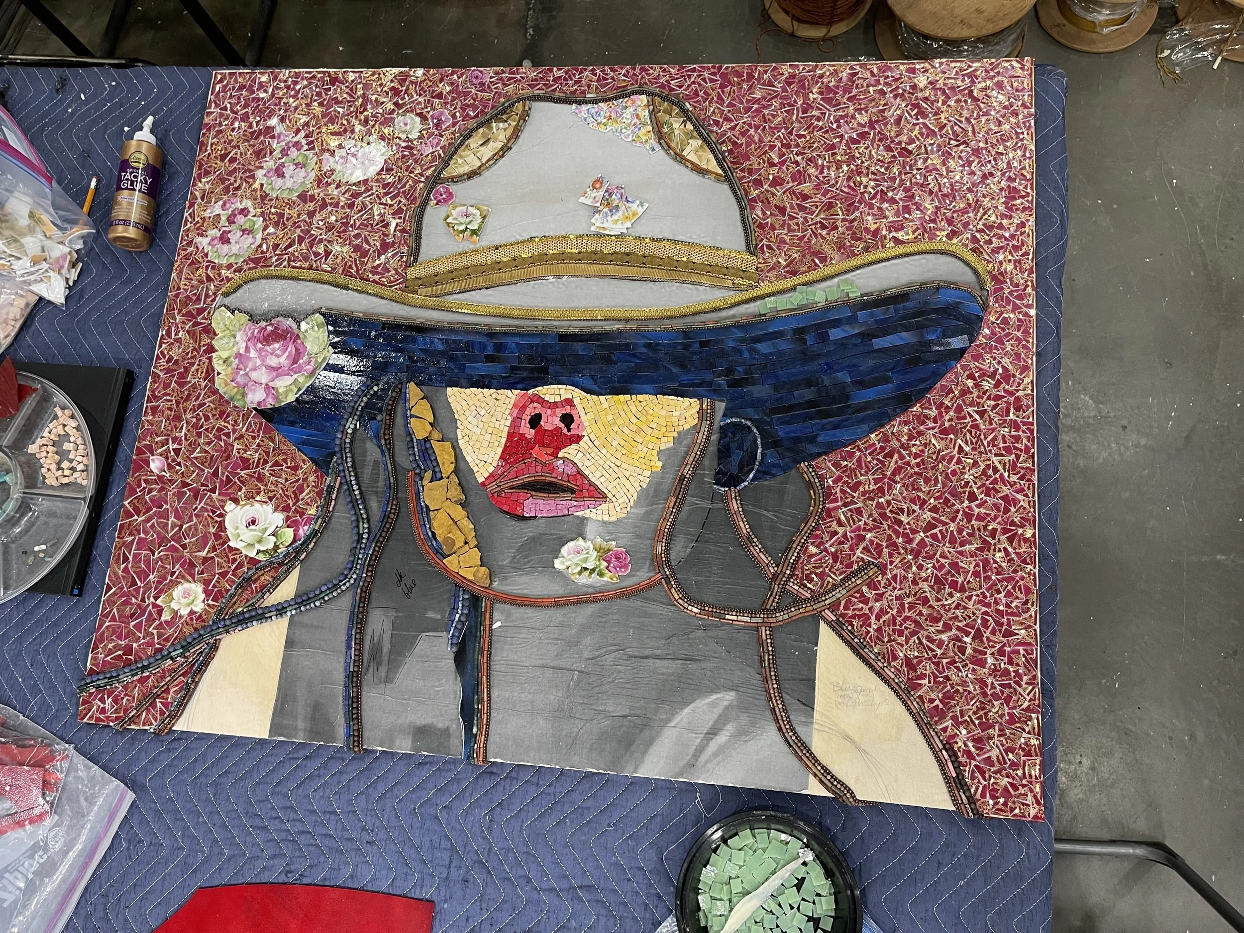 Lastly, to utilize all of the plates because you all know I am all about zero waste! I used the center of my aunt's plates for the hat. Again, adding just a few scattered flowers to break up the monotonous pattern.
