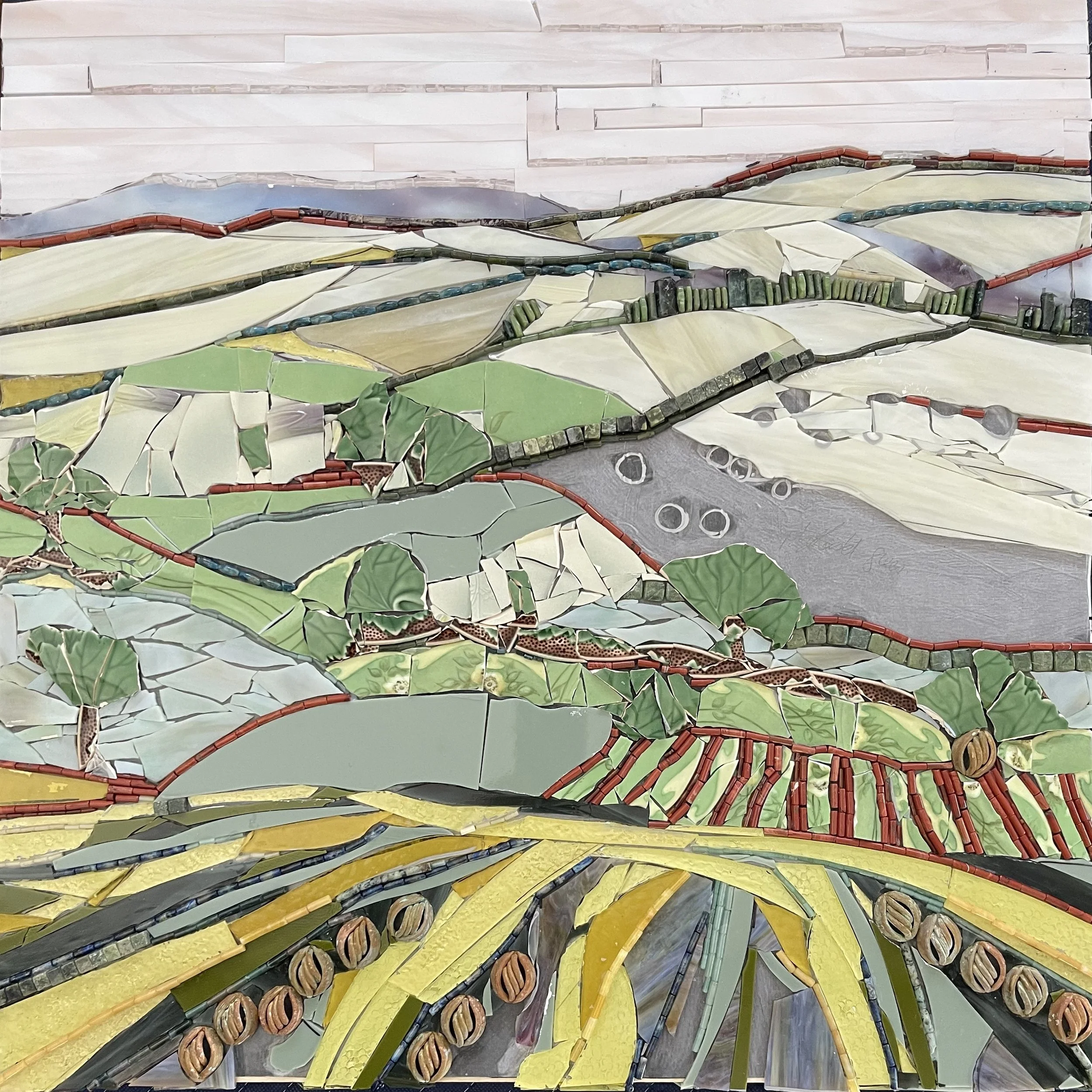 Way before I begin a landscape, way before I have an image in mind, way before I pull my palette, I think about what color grout should I use….